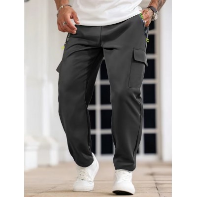 1pc Men's Fashion Solid Color Pants with Zippered and Drawstring Multi-Pocket Casual Breathable Trousers, Suitable for Summer Outdoor Activities